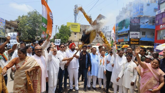 Congress workers in Rajnandgaon launched a scathing protest against the BJP-led Chhattisgarh government and the Enforcement Directorate (ED), accusing them of political vendetta against former Chief Minister Bhupesh Baghel and his family. Effigies of the BJP and ED were burnt in a public demonstration at Jaistambh Chowk.